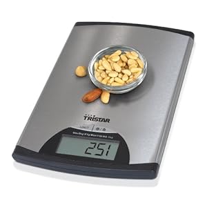 Die Küchenwaage Tristar KW-2435 kann mit maximal 5 kg belastet werden. Das aktuelle Gewicht lässt sich bequem über die übersichtliche LCD-Anzeige ablesen und die TARA-Funktion machen die Bedienung zudem besonders kompfortabel.